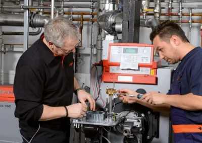 Large choix d’appareils, des modèles compacts muraux (13 kW) aux chaufferies puissantes (jusqu’à 300 kW en cascade).