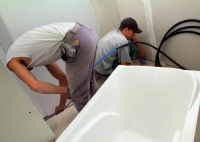 L’intervention commence par une étude précise de l’existant : repérage des arrivées d’eau froide et chaude, évaluation des diamètres de conduites, vérification des pentes d’évacuation et analyse de la capacité du réseau à supporter de nouveaux équipements.